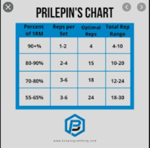 But the point of this blog isn’t to get lost in my affinity for the conjugate method (as Dr. Paul likes to state, “Methods are many, principles are few.” A lot of people have gotten REALLY strong, fit, buff, toned, HUGE!, whatever doing a lot of different things.) The point of those blog is to give you a better idea of why we chose to give you a certain number of reps at a certain percentage or loading variation, and better empower you to choose your own loading during our Group Strength and Conditioning or Strength Tribe classes. Enter Prilepin’s Chart, or as I stated in the title, “SCIENCE!” (Caveat to all my scientist readers… this chart was developed through the observation of high level training athletes in Russia – I know more steroids. – and NOT through a quantative scientific method. We’ll call it qualitative science so you don’t troll me in the comments… or maybe just “Bro” science.) Prilepin’s Chart looks like this: